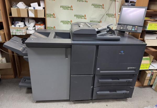 Продаю Konica Minolta bizhub pro 951. Промышленная черно-белая печать со скоростью до 90 копий в минуту. Состояние печати - без дефектов. Установлен блок копирования документов. Финишер с брошюровщиком-буклетмейкером в брошюры, дыроколом на 2/4 отверстия на лету, степлером в угол. Полностью заменен блок печки (все три вала, пальцы). Девелопер в нормальном состоянии. Барабан печатает без дефектов. Просмотр в любой день по предварительной договоренности. Без торга. Самовывоз или транспортная за ваш счет, в т.ч. погрузка. Возможно выставление счета +%. Пробег - 5,9 млн.