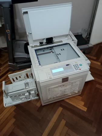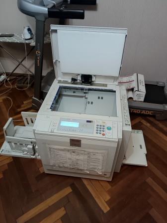 Ризограф / дупликатор RICOH Priport DX 4545 Мастер пленка 0009890 Пробег 1632174 Бонусом идет 2 рулона мастер-пленки и 14 коробочек краски Tamagawa TG-HQ-40 (JP 40) черная Разрешение при печати 400 x 400* dpi Макс. площадь печати: A3 Емкость лотков для бумаги: 1000 листов Метод печати Польностью автоматическая система с одним барабаном и прижимным валом Тип сканера: Планшетный Разрешение при сканировании: 600 x 400 dpi Скорость печати: 60, 75, 90, 105, 120 оттиск/мин Максимальный размер бумаги: 325 x 447 мм Минимальный размер бумаги: 70 x 148 мм Максимальная плотность бумаги для печати: 210 г/м² Максимальный размер оригинала: 300 x 432 мм Минимальный размер оригинала: 148 x 210 мм Длина запечатываемой поверхности: 410 мм Ширина запечатываемой поверхности: 290 мм Время изготовления мастера: 24 сек Масштабирование оригинала фиксированное: 71, 82, 87, 93, 115, 122, 141 % Масштабирование оригинала плавное: 50-200% с шагом 1 % Габариты: 1370х705х1035 мм Вес 87 кг Цена - 200.000 рублей.