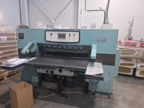 Бумагорезательная машина Seypa-132TV. Полностью в рабочем состояние. Год выпуска 1990. Производитель: Perfecta Schneidemaschinenwerk GmbH, Bautzen, Germany. Max. Формат/ширина: 1320 mm (52,0").Замена управления на программируемое - установка размера с пульта , программирование последовательности. 100 программ в памяти. Установлены электронные световые барьеры. Ширина реза = 132 см (длина ножа 152 см), 2 ножа запасных. Масса 3050 кг.