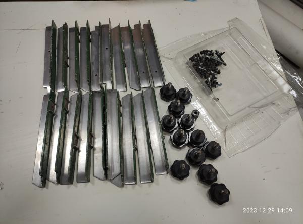 3) Коробка упоры - Внутри 12 боковых упоров для тетрадей с крепежом, пульт с кнопками, соединяющие элементы, винты и гайки. (90 000р за все содержимое коробки).