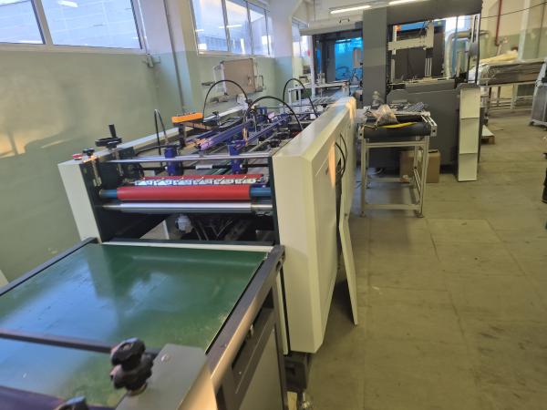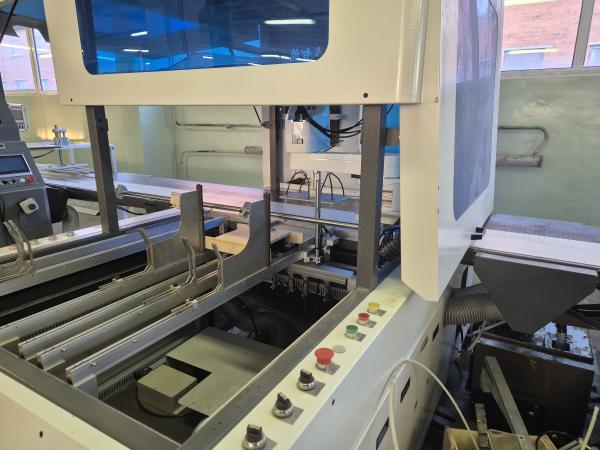Крышкоделка-автомат DS650PK, 2024 г.в. - клеемазка с роботом Yamaha - с позиционированием. Формат мин а5+, макс а2. Клеемазательная машина с автоподачей лайнера, конвейер, автоматическая подача сторонок, система позиционирования с роботом, модуль автоматическая машина загибки 4 клапанов.