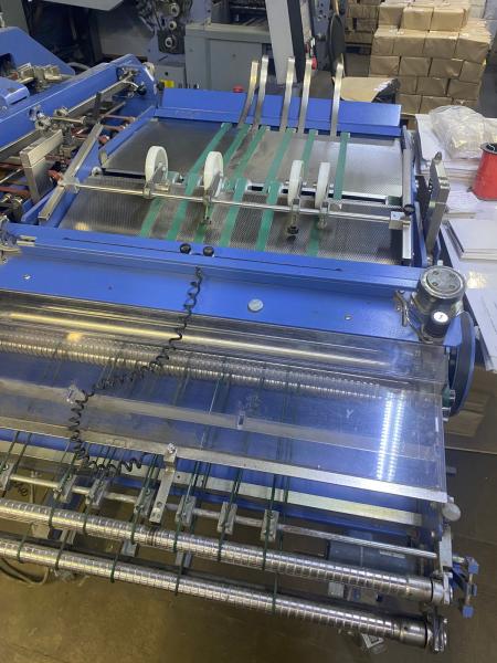 Машина в абсолютно рабочем состоянии. 6 кассет. 2 поперечных ножа. Есть функция склейки на одну точку (не пользовались), как опция.