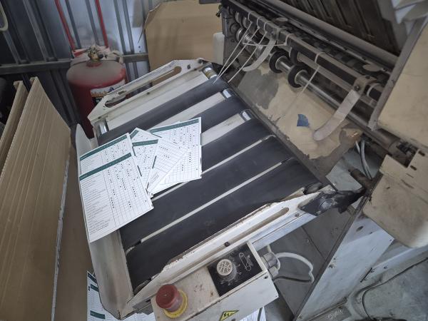 Фальцевальная машина BAUM 2020, модель 1320F (4+2). Год выпуска ориентировочно- 2005. Фальцевальная машина BAUM 1320F(аналог Stahl 52), валики в нормальном состоянии. Первая секция 1320F-3-P-5: 4 кассеты Вторая прикатная секция 1320F-3-8PG-5: 4 кассеты (2 к5ассеты-заглушки, 2 кассеты) верхняя подача вакуумным барабаном максимальный формат листа 520х838 мм минимальный формат листа 100х150 мм