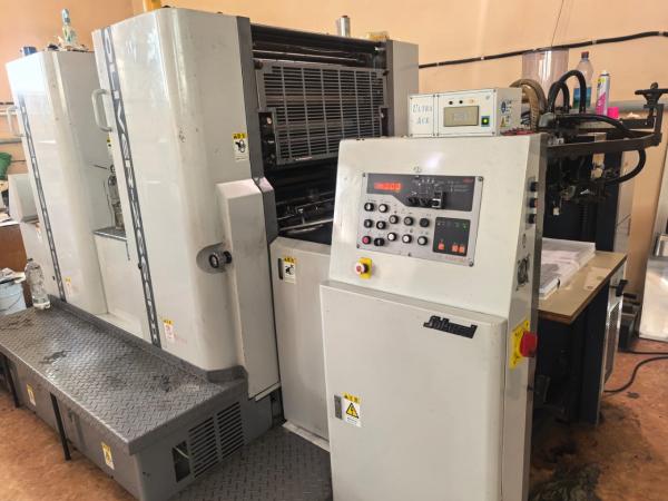 Безнал на ИП. Максимальная скорость печати листов: 13000 /ч макс. Формат бумаги: 520 x 720 мм. Система автоматической подачи бумаги Sakurai, система увлажнения Olivermatic, автосмывка.